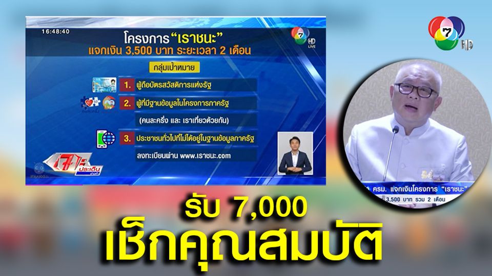 Source: www.khaosod.co.th เปิด 2 กลุ่มที่ได้รับเงิน 7,000 บาท จากโครงการ 'เราชนะ' โดยไม่ต้องลงทะเบียนใหม่ รัฐบาลดึงฐานข้อมูลเดิมพิจารณา คาดว่าจะมีอยู่ราวๆ 40 ล้านคน